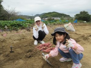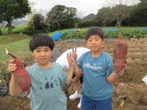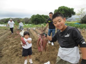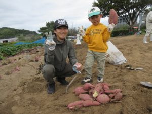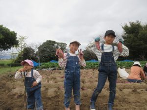 昨日よりグッと気温も下がり、半袖では肌寒いくらいでしたが、さつまいもを掘った後はちょうどよかったかもしれません![]()